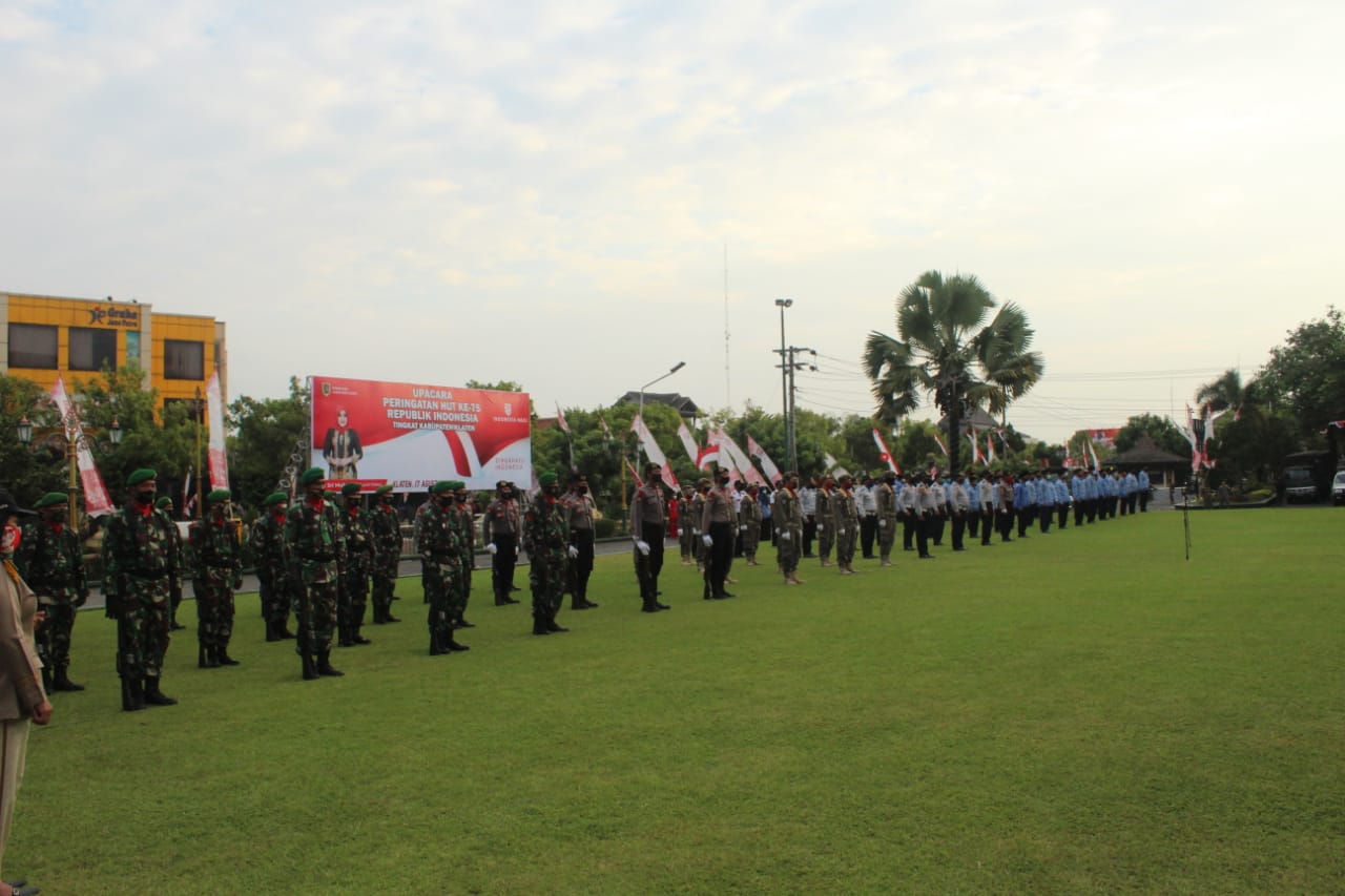 Rangkaian Upacara Penurunan Bendera Merah Putih dalam rangka Peringatan HUT Ke 75 Republik Indonesia tingkat Kabupaten Klaten berlangsung dengan hikmat, aman dan lancar.