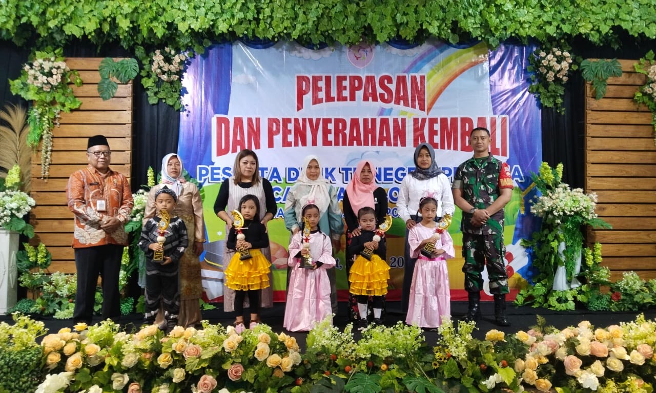 Wonogiri - Serda Awaludin, Personel Koramil 22/Slogohimo, Kodim 0728/Wonogiri menghadiri kegiatan pelepasan anak didik TK Negeri pembina Kecamatan Slogohimo TA 2023-2024. Sabtu, (21/06/2024) kemarin.